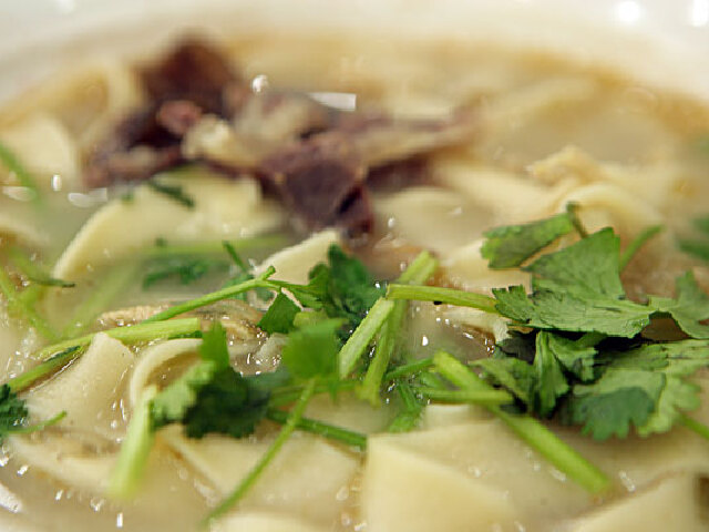 原阳烩面,准确的叫法应该是原阳羊肉烩面,是产自河南省原阳县的烩面的简称.烩面为河南著名面食,河南各市县因为做法以及风俗不同而具有不同的特色,原阳烩面是河南较有特色一种.原阳烩面具有汤肥肉瘦、浓香爽口、营养丰富、风味独特的特色.原阳当地知名烩面馆常有其他地区车辆,多为慕名为原阳烩面之名而来. 原阳烩面所用汤为各种调料调制的羊肉老汤.面在汤锅中熟后,盛碗.碗中汤仍为老汤,配以味精、香油、羊肉片、香菜调制而成.上桌后,原阳的所有制作羊肉烩面的餐馆均配有油炸辣椒,由顾客自行取用.原阳烩面仅有上述一种口味,有别于河南其他地区做法的是其他地方常用鹌鹑蛋、海带等配料,不会出现在原阳烩面中