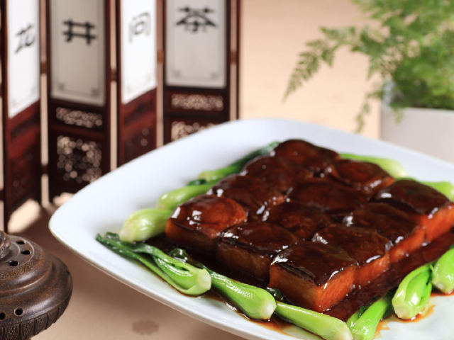 新乡的“罗锅居”大楼,所制作的酱肉色泽鲜艳,五香可口,肥而不腻,熟透而不烂.这就是远近闻名,别具风味的罗锅肉.罗锅肉制作方法严格讲究,选用65公斤左右的健康肥猪,宰后放20小时(根据季节变化灵活掌握),取二道肉脖至带硬皮肉20公斤,将肉洗净切成长12厘米,宽10厘米的长方形块状,放入摄氏80度热水中一遍,捞出刮净,冲洗干净后放入锅内,盛入老汤,淹住肉即可加佐料(花椒30克,八角60克,桂皮50克,丁香15克,草果20克,玉果15克,良姜40克,枇卜20克),先用武火(大火),开锅后改用文火(小火),中间翻肉两次,煮三小时出锅.出锅后摆在案上晾凉,保持成型不变样