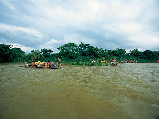 永安溪漂流全长约7.5公里,历时1小时30分钟,以竹筏为工具的永安溪漂流没有皮划艇的刺激,却能让你静下心来,欣赏两岸田园风光,放眼望去,两岸郁郁葱葱、浓荫遮蔽,河床开阔。颇有“小小竹排溪中游,巍巍青山两岸走”的意境。