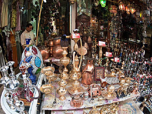 埃及的商店星罗密布,而古老的集市更是一种活的化石。香料、饰品、手工艺品、织毯等充满埃及色彩的特产在市面上种类繁多,应接不暇。其实香水和香水瓶比较推荐,不但易于携带而且本身相当漂亮,纸莎草纸是另一种古老的特产,与石雕甲壳虫一样,打上的是深深的埃及印记。不过埃及市场很多小贩会故意报出高价,一番讨价还价是买东西的必经过程。