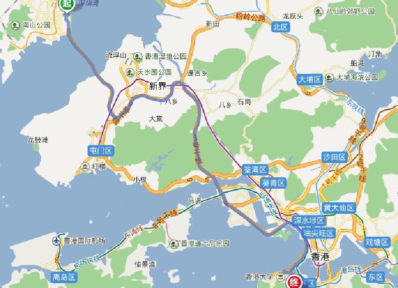 线路2:从深圳湾附近乘坐罗宝线到达罗湖口岸,从罗湖口岸乘坐香港地铁到达中环站,乘坐15号巴士到达太平山顶(较为费时)