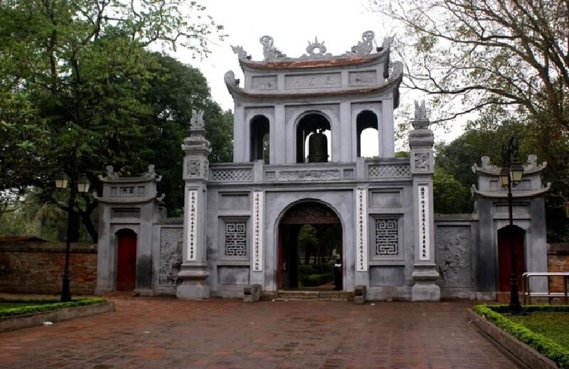 河内文庙是越南仅次于古螺城和顺化古都的全国第三重要文物保护单位。文庙门分为3个门洞,中门分为上下两层,上面用汉字楷书书写“文庙门”。中门只有在皇帝进行祭孔活动或者科举发榜时才开,平时只开左右侧门。