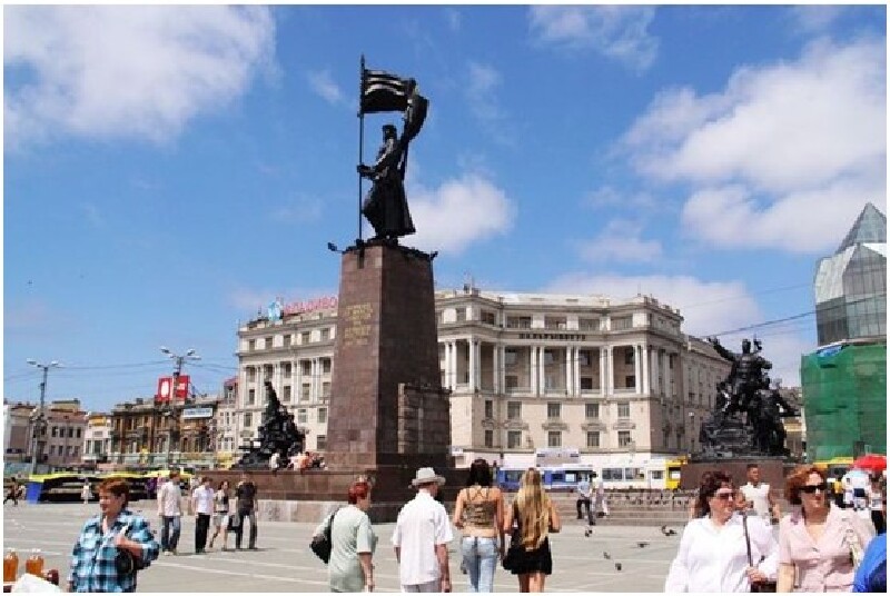 远东苏维埃政权战士纪念碑,建立于1961年,是为了纪念在俄国二月革命和十月革命中,为了争取苏维埃政权而牺牲的战士们修建的。这座纪念碑是远东最大的纪念碑。在两次战争之间,海员们为了成功的从盟国运回战争物资,不时地要和敌船交火。不少的海员就此沉入海底。