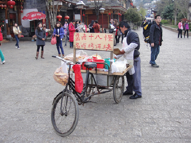 饵块是昆明特色小吃,当地人过年必备吃食。饵块也就是米蒸熟压制出的饼。有紫米饵块、糯米饵块、还有烧饵块,可以直接吃,也可以蘸酱吃,包着油条吃,咸的、甜的、辣的,都有。