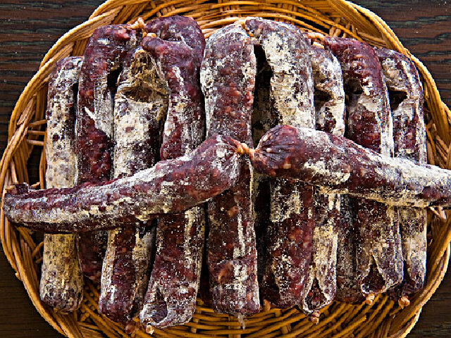 大厨精制的鮮嫩多汁的手工香肠,食用的时候一定要配上煎的香脆的马铃薯饼以及用洋葱精心熬制的醬汁一起食用。