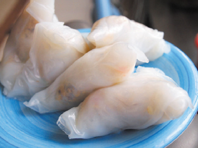 首先是制作肉馅儿,这个很简单,跟饺子馅儿差不多,您爱吃哪些就随意组合在一起,猪肉、胡萝卜粒、木耳等。然后是用凉皮包住馅儿,这里有技术,技术差的会把馅儿露出来,或者皮破了。当然,要包成三角形状的,其实任何形状吃起来都一样。包好之后,你可以选择蒸,也可以选择煎。