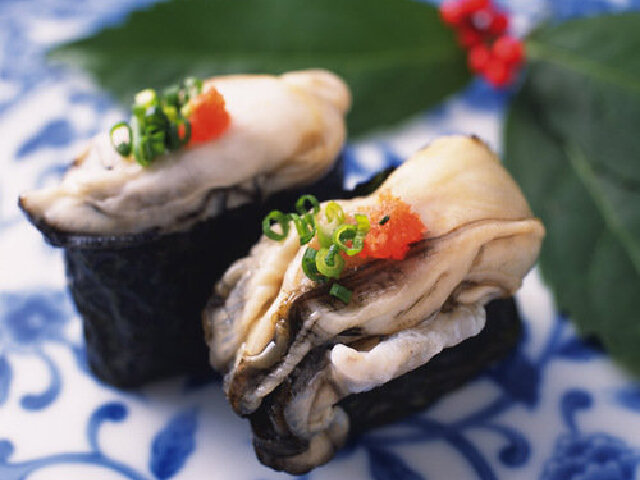 奈良名产。基本的做法是:将鲑鱼片、咸青花鱼放在醋拌饭上,然后用碧绿的柿子叶包起来。样子非常诱人。