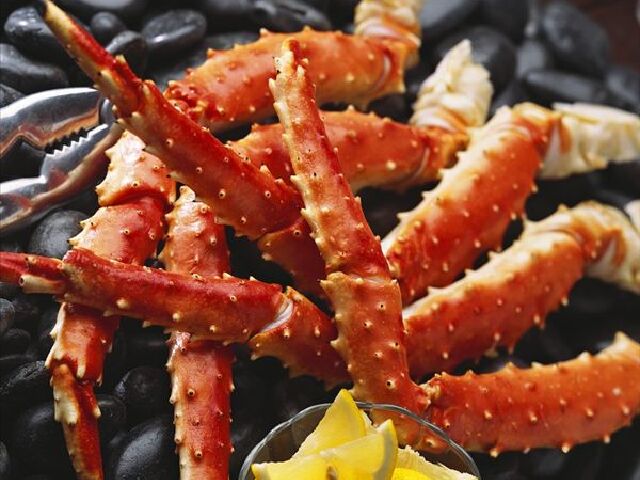 阿拉斯加蟹可谓是蟹中之王,走上餐桌的阿拉斯加蟹生活在北极圈冰海,无法用人工养殖,这种蟹的卖点就是巨大的蟹腿肉,含有丰富的牛磺酸及甲壳素。