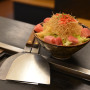 猛夹烧,作为东京下町的特色料理而被大众所熟悉。制作时用水将面粉稀释成面糊,放入切细的包菜、天妇罗屑等,加上酱油和调味汁调味,然后放在铁板上烧烤。它与铁板烧非常相似,不同的是猛夹烧汤汁较多难以成形。因此首先将包菜等材料放在铁板上炒,堆成环状的堤坝,接着将剩余的汁料倒入正中央。随后,在水分殆尽,快要烧糊时,用铲子切着吃。月岛街就是以猛夹烧出名的料理街,约有60家店铺林立,您可品尝到海鲜以及具有民族特色等多种口味的猛夹烧。