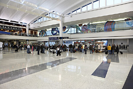 机场有许多商店,每个候机楼都有报刊店和纪念品店,候机楼 B 有一家腕表店,候机楼 C 内有高尔夫用品零售店。免税店主要位于候机楼 D。
