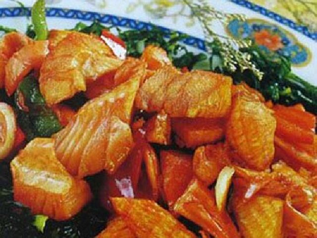 色金黄悦目,肉质鲜美,烟熏味中带有瓜片茶叶之清香,风味别具。