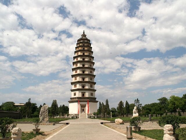 开元寺塔河北定州市,是我国至今保存完好的砖木结构古塔中较大的。在京石高速公路上就已经能遥望到开元寺塔高耸在云间,宏伟壮观。开元寺塔,共有十一层,塔身为八角形,若看其横截面,则是由两个正方形交错而成,雄伟大方。塔身东、西、南、北四面设券门,又有四面假窗,雕工精湛,令人叹为观止。