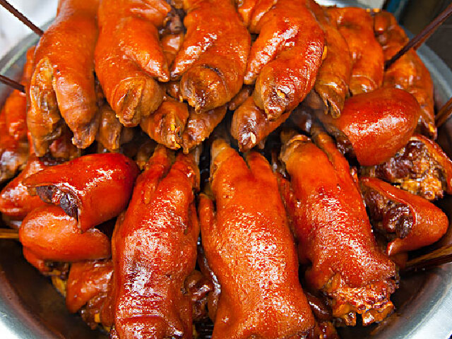 猪手就是猪的前手,猪蹄是猪的后蹄子. 猪全靠四只脚行走蹲卧,还承载着笨重的身躯.按中医“以形治形”的食疗观点,食猪蹄能补人(特别是下肢功能衰退的老年人)的两脚,使人步履轻健、腿肌有力.祖国医学还认为,老人一生积劳,肾精虚损,常有腰酸、腿软、驼背、步态蹒跚等衰老现象;又因年迈胃液不足、肺气虚衰、皮肤常现干枯、皱纹、斑点及毛发花白;还因气血弱、活动少,导致肌肉萎缩、疮疡难愈.冬令进补,多吃猪蹄,衰老就可大大推迟.据《随息居饮食谱》载:“猪蹄能填肾精而健腰脚、滋胃液以滑皮肤,长肌肉可愈漏疡,助血脉能充乳汁,较肉大补”.据研究,猪蹄富含蛋白质、脂肪、钙、磷、铁、维生素A、B、C、E等,有利于防治脚气病、关节炎、贫血、老年性骨质疏松等疾病. 猪蹄煲得烂熟,皮肉分离,肉绵皮胶,骨髓漏出,入口易化.脱牙的高龄老人,也能饱享此口福.不过,猪蹄属高脂、高胆固醇食物,患有动脉硬化、高血脂、高血压、冠心病和肥胖症者,就不宜多吃