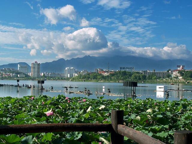 甘棠湖位于九江市中心。湖中筑有长50 米的长堤,堤上有宋代所建思贤桥。湖中烟水亭建造初时,为三国时周瑜点将台旧址,现存为1972 年修复,有船厅、翠照轩、亦亭等建筑,亭前还有石剑匣二座。 甘棠湖,是九江市内引人入胜的景点,甘棠湖位于江西省九江城区,南倚庐山,北濒长江,平均水深1.4米,东西约长2公里,水源由庐山泉水汇入而成,就像一颗璀璨的明珠镶嵌在古城浔阳的中心。唐诗人白居易为江州司马时,以“别时茫茫江浸月”之句名“浸月亭”。