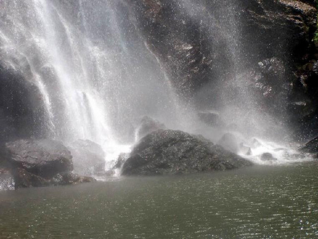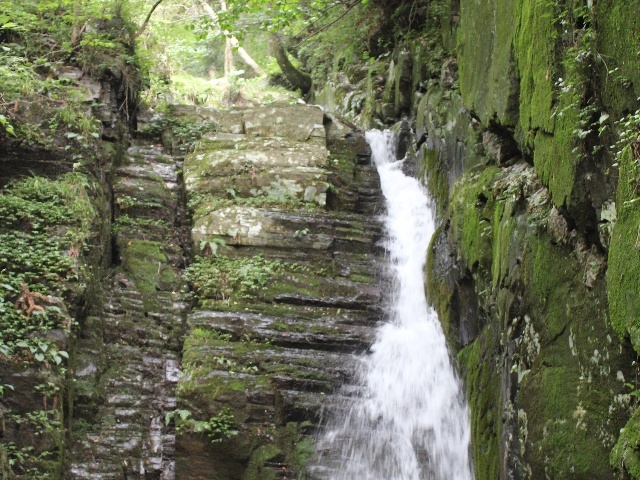 三宝树风景区内有两个以秀美纤柔为特色的瀑布,那就是黄龙潭瀑布和五龙潭瀑布。幽谷之中,悬崖陡立,草木茂盛,一条瀑布从崖上跌落,稍做停留,就又在石缝之中蜿蜒前行,奔向下游了。黄龙潭瀑布以秀、幽为特色,黄龙潭瀑布之下的崖壁上,青苔遍布,衬托的小溪绿意丛生,飞流直下的透明的瀑布,使黄龙潭显得更加的幽静、清凉。