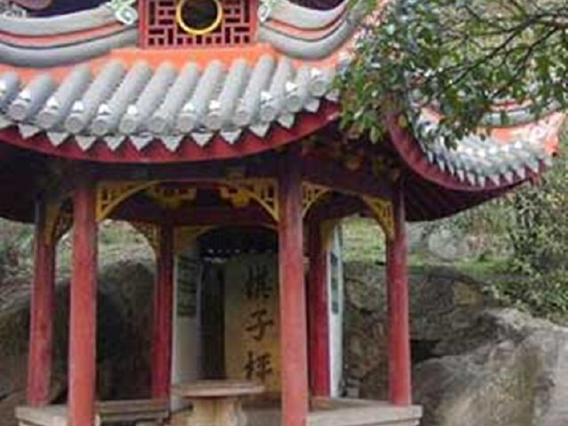 棋子枰因相传有仙人在这里下棋而得名,山壁的石碑上镌刻着“棋子枰”三个字,大约立于清乾隆六十年间,原本这里建有亭子,道光二十六年的时候改建为楼阁,阁名魁星阁,随着时间的流逝,楼阁与石碑早已被人们遗忘,是后来是在整山的过程中被发现的,但楼阁却是没有重建了,而是在原来的地方新建了一座奕棋亭。