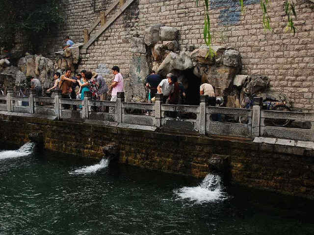 黑虎泉泉水出于深凹形洞穴,通过三个石雕虎头泉水喷出,波澜汹汹,水声喧喧。黑虎泉群参差错落不已,泉既汇成河,河复又蕴泉。泉群附近假山平台,回廊曲径,夏日绿树荫荫,鸟语蝉鸣,是游人品茶、玩景之胜地。半夜朔风吹石裂,一声清啸月无光。后来人们在洞北砌一方池,在池南壁雕刻了三只双目圆瞪,大口怒张的虎头。黑虎泉的涌水量在济南诸名泉中仅次于趵突泉,居第二位。1985年建设环城公园时在此处新建了观赏泉水的亭台,游人可凭栏赏看泉涌及周围景色。