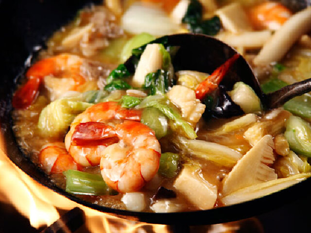 鲁山揽锅菜是鲁山古老与现代精湛烹调技术相结合、精工细做的“杂烩菜”,系河南省地方名吃之一。据传,起源于明朝洪武年间,后经杨氏几代人的潜心研究,结合当地人酷爱咸鲜、滑嫩、香软的特点制作而成。