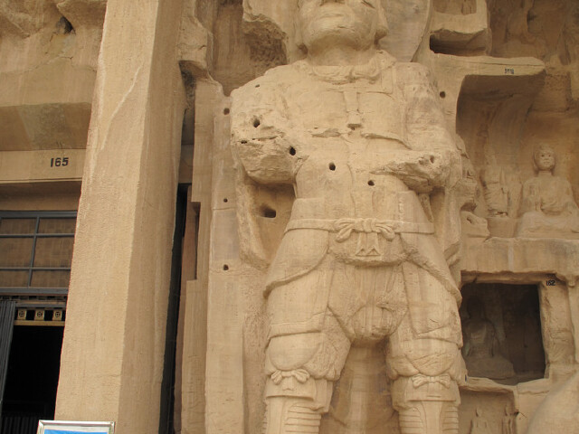 165号窟是北石窟寺的一座石窟,是较大的洞窟,也是较精美的洞窟,始建于北魏时期。165号窟坐东向西,走进洞窟,你就会被这些栩栩如生的雕像所震撼。八米多高的佛像,立于一米多高的祭台上,显得殿堂中来此朝拜的信徒渺小无比。北魏时的工匠们大胆的突破传统,采用了拱形支撑和三角形稳定等原理,为我们呈现了这么一个长方形的佛殿式石窟。