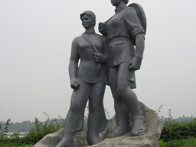 在红色娘子军雕像