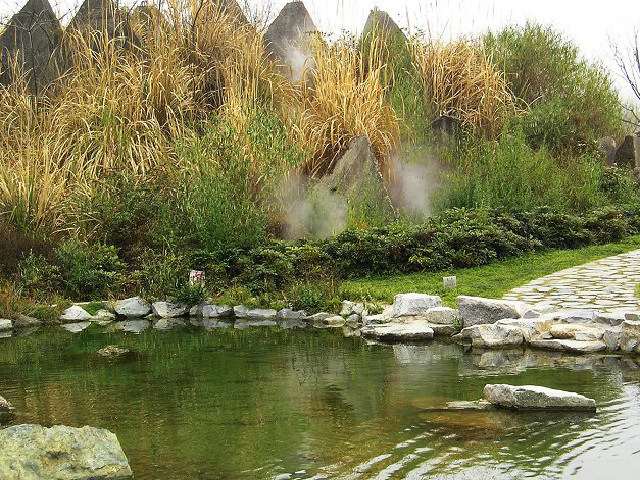 在悠长深邃的峡谷中,一条主体瀑布和若干分支瀑布形成了气势磅礴的瀑布群,主体瀑布宽约数十米,这就是白果树瀑布。清泉从百余米高的陡峭山崖飞流直下,蔚为壮观,悬泉瀑布飞溯其间,荡起数十米的水雾,随日出日没,瞬息万变,时而七色彩虹,时而串串银珠腾空。周围群峰峙立,重崖叠嶂,意味无穷,山上古木森森,幽静无比,绿潭如镜,回清倒影,让游客和自然生灵零距离接触。