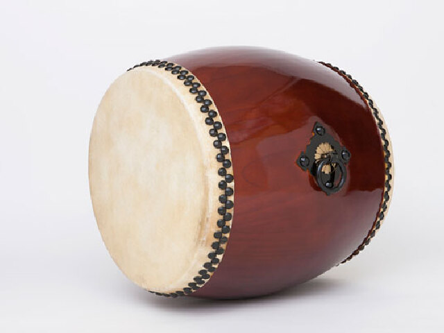 鼓身象木盆,只蒙一面皮子。春节期间,打鼓人系上腰带,带上斜插一弯棍,从后背斜到左肩前,棍头挑着木鼓,左手扶鼓边,右手拿木棍打鼓,打时又唱又跳。