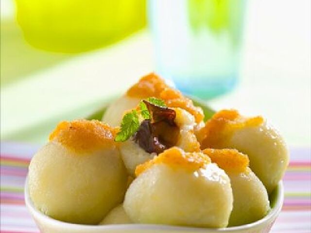 将奶渣或樱桃包在饺子中,煮熟后略加酸奶油调料,十分可口。