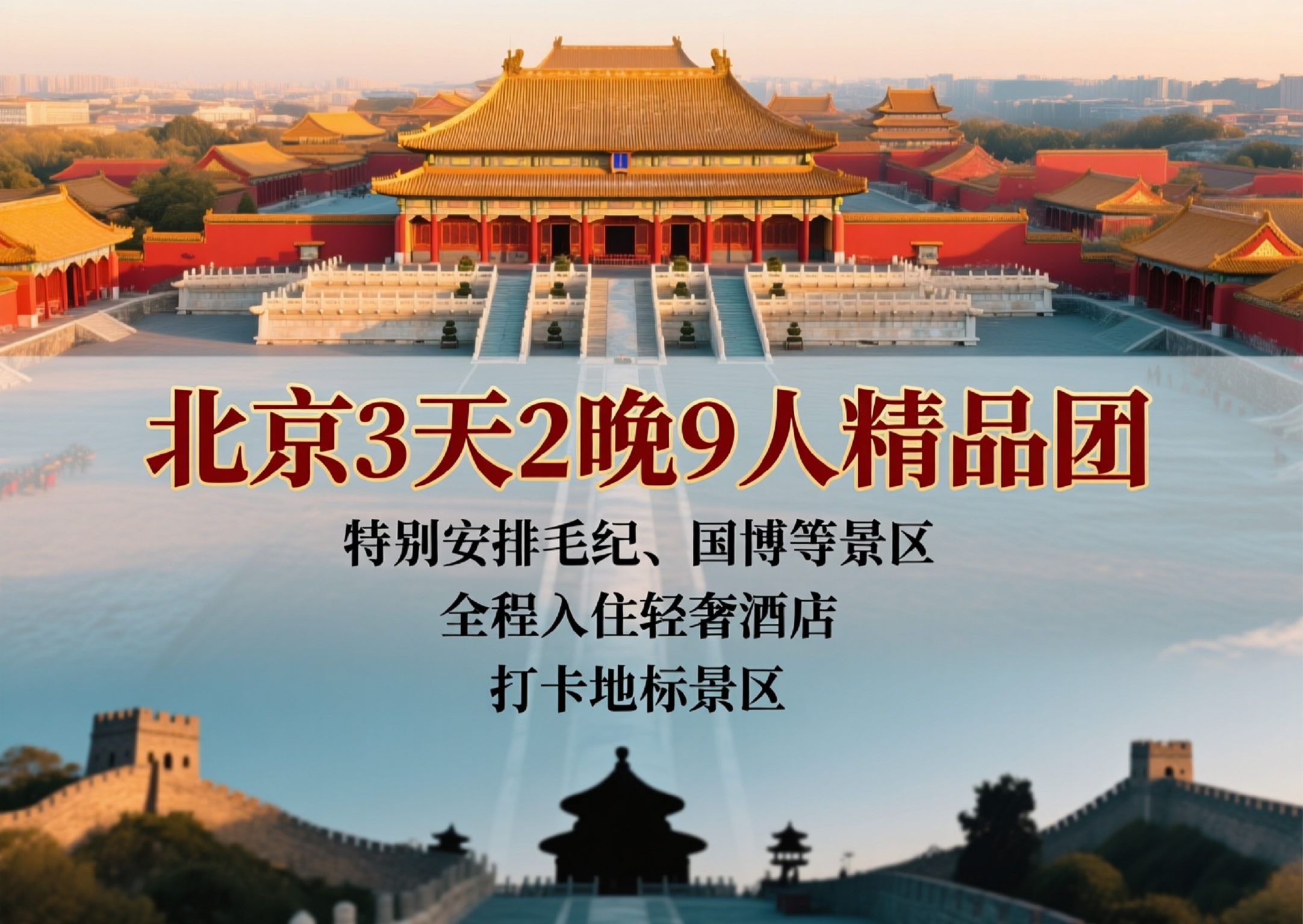 <北京3天2晚+9人精品团+0购物0自费>当地参团丨提前7天进毛纪+国博/大会堂/城楼三选一丨入住轻奢酒店丨打卡地标景点