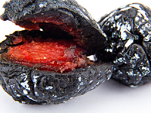 祁阳乌梅,已有四百年的历史,种植在睦关头、云盘甸、太白山、赤塘等乡之低矮丘陵山地上.五月中旬果实未成熟时,将青梅采摘回家,用杉木炭灰拌匀后,炭火烤干即成乌梅.它有止渴、解热、镇吐、止咳、生津、驱虫等功能.故将乌梅列入珍贵稀有药物一类.经济价值很高,每百市斤价达180元.祁阳乌梅有青梅和红梅两大类:青梅类分桃梅和药梅,果实未成熟时幸免为青色,完全成熟时仍为青黄色.红梅类分鸭蛋梅和李梅.成熟过程中向阳面红色逐渐加深.祁阳县下马渡区历史上有成片和散生的梅树数万株,年产量在千担以上.但是由于林权多变动,资源被破坏,产量逐年减少.近年来,有关部门投资支持农民,大力发展和恢复乌梅生产