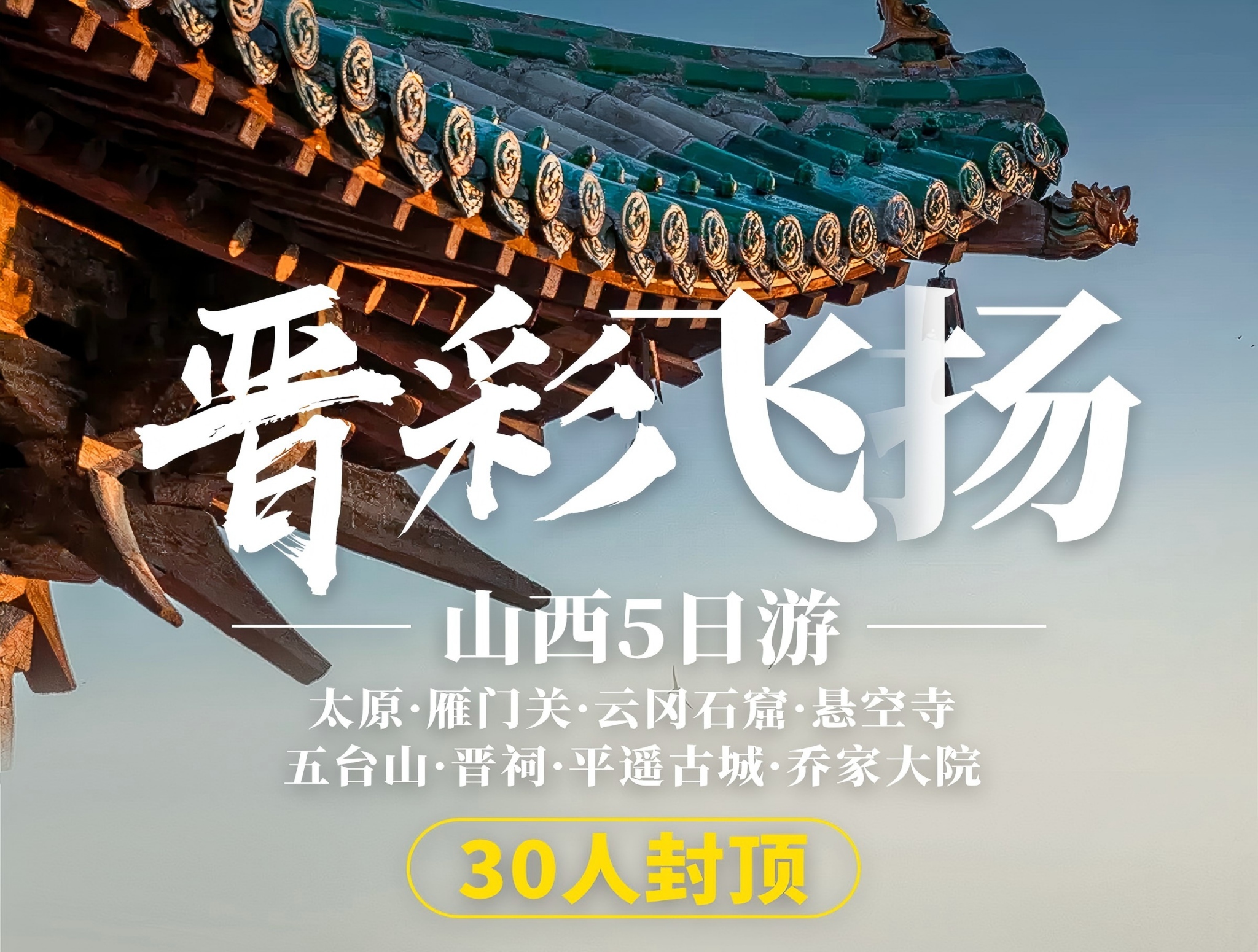 <山西五台山+云冈+雁门关+平遥双飞5日>晋彩飞扬/小交通全含/赠平遥表演/无购物无自费/单人出行可拼住/六大5A景区