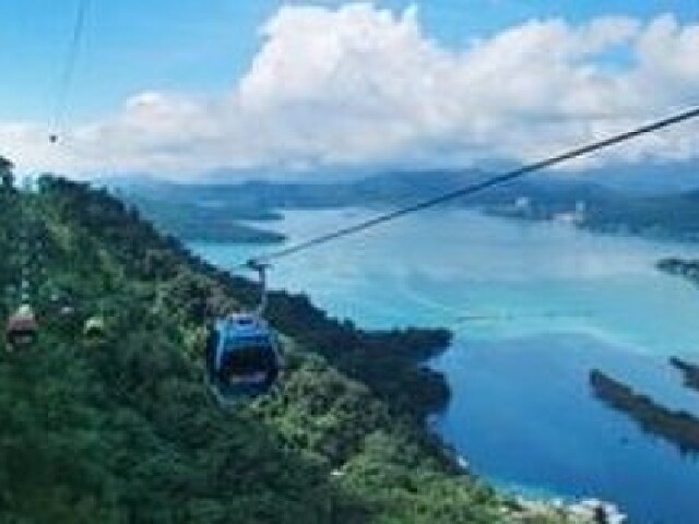 日月潭缆车行驶九族文化村到日月潭伊达邵,全长1.87km,全程大约7分鐘,从空中可以看到日月潭不一样的风格,好上、好水、好景都能尽收眼底。