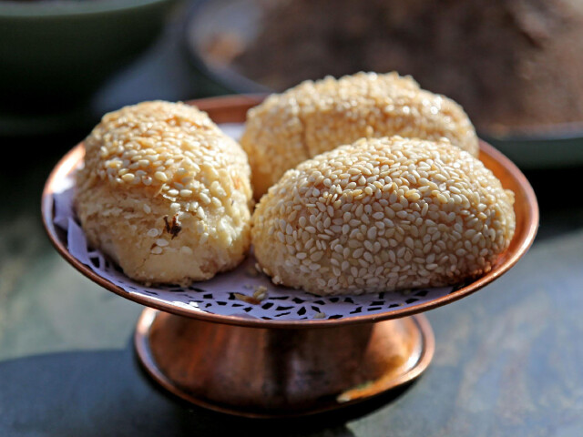 黄桥烧饼是古老的汉族传统小吃,产于江苏省泰兴市黄桥镇,流传于江淮一带。黄桥烧饼制作的主要原料有面粉,猪油,花生油,芝麻。所用的面粉必须是中筋,强筋和弱筋却不宜制作,所用芝麻必须去皮,去皮的芝麻不得改变它的色泽与形状,一般有咸甜两种口味,讲究的做法是以上等肉松作为馅料。
