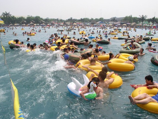 深圳水上乐园的造浪池面积共4770平方米,造型设计完全模拟真实海滩,共可产生4中不停类型的波浪,波浪较高可以达到1米。游客既可在浪池中心体验海浪袭身的感觉,亦可在池边享受浪花摩挲脚丫的触感。