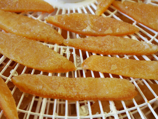 干煸桔皮丝是用干桔皮加上生姜、干椒、花菜芯等煸成,吃起来脆嫩可口,桔香四溢。出门在外吃一道这样的菜能起到清热去火的作用。