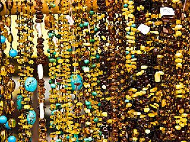 在这里到处可以见到金光闪闪的琥珀,个个都是千姿百态的,一小的挂件为主,像那种大的雕塑的很少,所以大家可以放心地挑一些自己喜欢的琥珀饰品。
