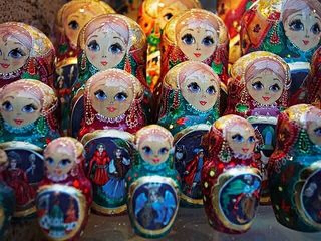 俄罗斯套娃是当地制作的木头玩具,一般是由多个一样的图案的空心木质娃娃一个套一个组成,很有意思。