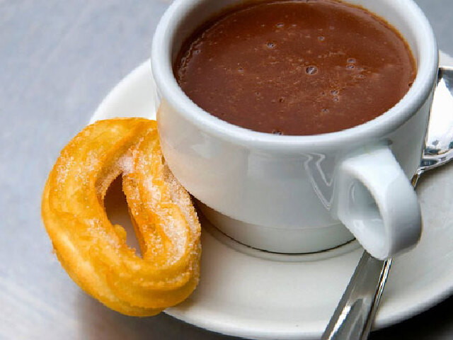 美好的一天,从西班牙的“油条”开始。不需要刻意去寻找哪家店铺,因为许多小酒吧里都能吃到这既香甜又补充能量的早餐。小的叫Churros,大的叫Porras,几乎跟中国油条长得一样,但小的更酥脆可口。西班牙人吃油条会撒上白糖或者蘸着浓浓的热巧克力吃。