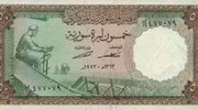 1叙利亚镑=100皮阿斯特 发行的货币币值有: 2.5、5、10、25、50皮阿斯特和1镑