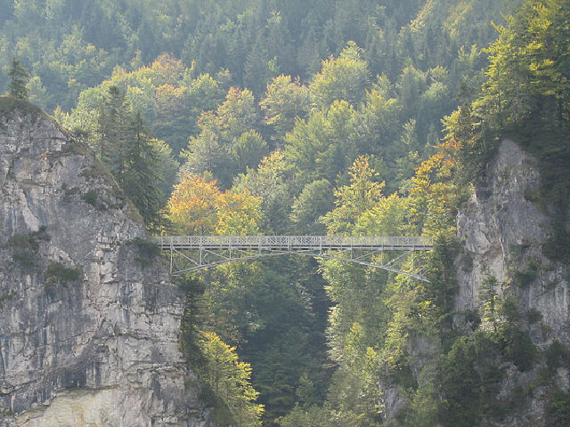 玛丽安桥连接了新天鹅堡南面两座山,横跨于山谷和瀑布之上,是拍摄新天鹅堡的最佳位置,新天鹅堡的经典侧影都是在这里拍摄的。