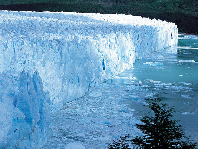 蓝白色的佩里托莫雷诺冰川(Perito Moreno Glacier)是是世界上极地之外较大型的冰河之一,也是世界上罕见的仍在增长中的冰河,因此它也受到了更多人的追捧成为旅游胜地。远处望去,整个冰川呈现出深蓝色调。60米高的不规则冰块轰然倒下,发出如打雷般的巨大声响,很多游客前来只为了看看冰川等待下一次裂冰,那也很值得。