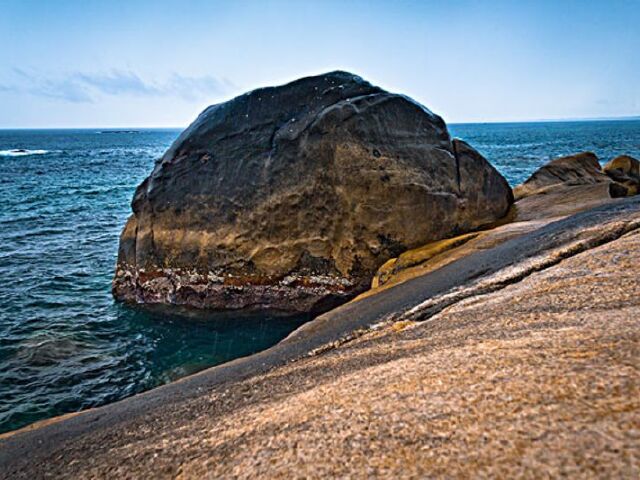 文昌石头公园位于海南省文昌市龙楼镇,以铜鼓岭为中心,是海南的最东角,公园沿海长2公里,是数万年前造山运动隆出地表的石头,经漫长岁月潮汐的拍打雕刻和风化而成。石头公园由三部分组成:第一部分气势磅礴,石头重的达数千吨,形状千姿百态,造型有的像海龟,有的像古猿,有的像恐龙。涨潮时,海浪涌进岩洞,发出惊天动地的雷鸣声,海涛拍岸时,满天浪花,星星点点。特别是风动石,高3米多,重约20吨,上圆下尖,风吹能动,摇而不倒,千万年来,历经沧桑,多少个12级台风也不能把它吹倒。第二部分由墨绿色的花岗岩组成,石头较为平缓,错落有致。石头上海水星罗棋布,蓝天白云倒映,景色旖旎,从铜鼓岭流下的山泉与海水汇合到海沟里,情趣盎然。第三部分形态统一,由天然鹅蛋石组成。