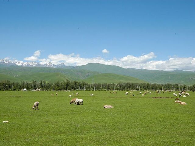 喀拉峻草原位于特克斯县南喀拉峻山,距特克斯县——八卦城56km,距伊宁市175km,有简易公路相通。海拔1600-2000m。喀拉峻系哈萨克语,意为“黑色莽原”。这里是典型的山地草甸类型草原,地势起伏和缓,视野开阔,草原5-9月碧草茵茵,盛夏之际雨水丰富、日照充足,各种野花恰似点点繁星开遍山野。