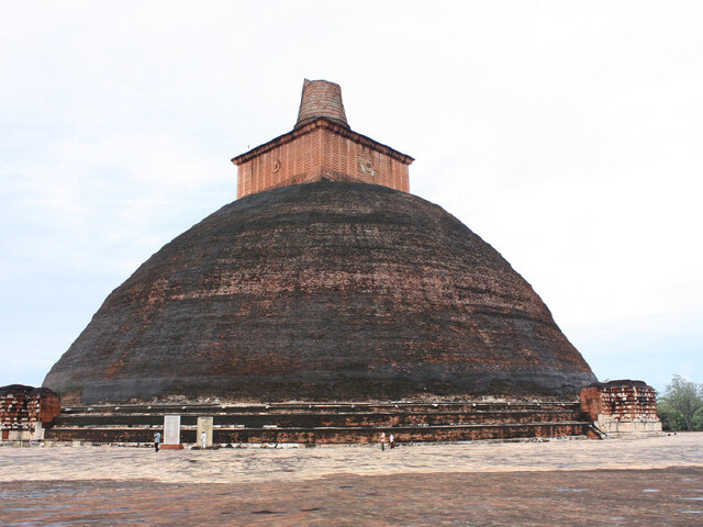 这个佛塔是在3世纪时,由摩诃斯纳王命令修建的,现存高度大约70米。原来的高度据说由122米,加上放置水晶的顶端有152米,砖砌基座直径113米,厚8米。从古至今杰特瓦纳拉玛舍利塔都是与鲁梵维里萨亚舍利塔和无畏山大塔起名的阿努拉德普勒的地标建筑之一。这个舍利塔之所以出名,除了它巨大之外,还因为1982年,在这里发现了用梵文书写与金板上的9世纪左右的摩诃斯那作品。作为现存梵文较好作品,它是极其宝贵的文化财富。在这座舍利塔的后面有一座寺庙遗址,有一根长8米的门柱,至今仍然屹立不倒,门柱有3米在地底下。当时这巨型大门是为迎接佛像的进入而开。