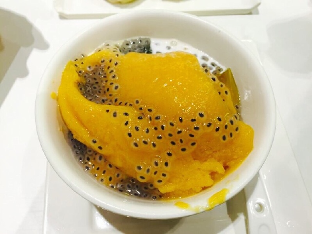 芒果凉粉黑珍珠,港式甜点之一,芒果吃起来很像冰沙,口感很特别,香甜可口,看外形就很诱人。