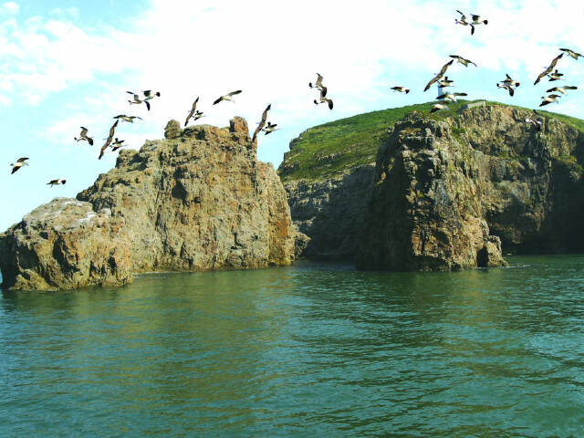 海驴岛名字的由来可谓是传说颇多,目前比较火的传说是这样子的,相传猪八戒当年用扁担挑着一头驴和一只鸡过河,但到了海中心的时候已经天微微亮了,公鸡开始打鸣,吓到了旁边的驴,于是鸡和驴都掉进了水里,就形成了今天的鸡鸣寺跟海驴岛,每年都有成千上万只的海鸥飞到海驴岛来繁衍,岛上尚无居民,唯一的“居民”就是这些飞来的海鸟。