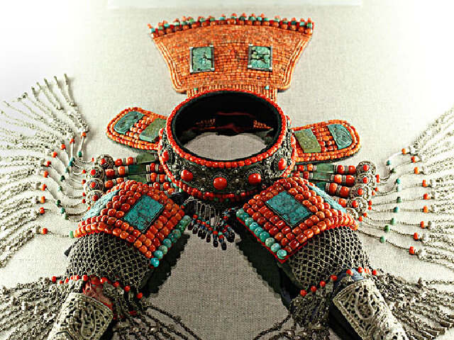 早在元朝以前,蒙古族便以使用银器闻名.蒙古族银器品种有银碗、蒙古刀、蒙古银壶、饮酒器皿、头饰银簪、各种马具鞍花等.其特点是大方淳朴,精巧细致,色彩纹样古雅,具有鲜明的民族风格