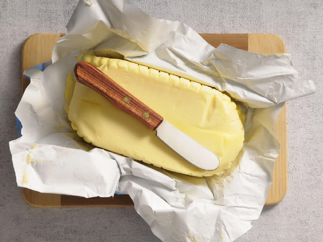黄油,蒙古语称“希日陶苏”,其味道独特纯香,含有丰富的营养物质,是牧民招待宾客的佳品。黄油可以从奶皮子里提,可以从白油中提,也可以从鲜奶凝结出的油皮中提取。 若用鲜奶提取,要把奶放在一个筒状容器中,把一个一头带有圆板的棍子的带板子的那头放入牛奶或羊奶中,不停的上下搅拌,在搅拌了大约几百次之后,就会在奶的上方漂起一些白色的半固体,用筛子捞出白油,挤干水分,再经过提炼就变成了黄油。