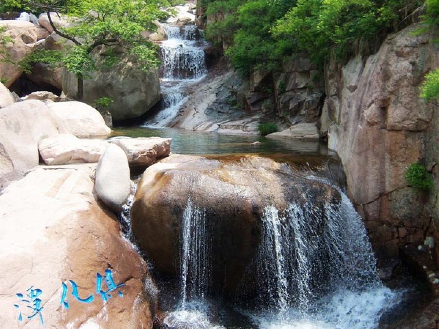 北九水位于青岛崂山,坐落在白沙河的上游,白沙河发源于山顶的北边,河水流经山脚的时候出现折流,共有九折,人们行走在河畔小路的时候遇到转折处是必须要涉水而过,共有九涉,每涉一次为一水,故而称为九水,九水也分内九水跟外九水,外九水也就是北九水,是九水中较为著名的景观,这里极为清幽,河水静静的流淌过清一色的花岗岩石板路完美的切割了内九水跟外九水,除了清一色的花岗岩外这里还有清一色的青蓝色水,河水就像是用颜料涂过一般的青蓝色,遇到水多时还会有一个渐变色的路段,很是好看。
