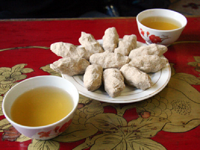 贝壳山酥油糌粑,“糌粑”是藏语,意思就是炒面。糌粑的优点是可以长期贮用,不易发霉,而且只要有水,无火也可食用,热量大,营养高,吃了一碗长时间内不饿,而且能抵御寒冷。一边就着奶茶吃它,清香甜润,可口宜人,让你爱不释手。