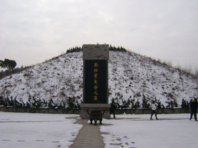 临淄墓群位于临淄城周围几十里,有墓葬总共一百五十多座,这些经历多年沧桑的古冢遗迹,大多是春秋战国和汉代的国君、大夫和贵族的,构成了庞大的”临淄墓群”。它是齐国古城的组成部分,是我国保护的重点文物。较为有名的管仲墓在临淄城南牛山北麓,墓高十四米,后人登临牛山,总免不了在管仲墓前流连一番,祭拜这位先贤。旧时墓前曾立一石碑刻有赞颂他的诗,今已无存。